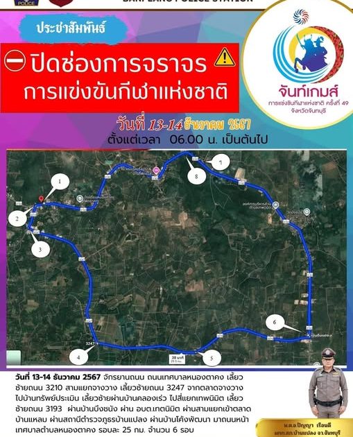 #ประชาสัมพันธ์ วันที่ 13 และ 14 ธ.ค. 67 ขอความกรุณาพี่น้องประชาชนในเขตพื้นที่ หนองตาคง-เทพนิมิต เนื่องจากจังหวัดจันทบุรีเป็นเจ้าภาพในการจัดการแข่งขันกีฬาแห่งชาติ “จันทเกมส์ ” จะมีการใช้ถนนเทศบาลหนองตาคง เลี้ยวซ้ายถนน 3210 สามแยกจางวาง เลี้ยวซ้ายถนน 3247 จากตลาดจางวางไปบ้านทรัพย์ประเมิน เลี้ยวซ้ายผ่านบ้านคล่องเร่ว ไปสี่แยกเทพนิมิต เลี้ยวซ้ายถนน 3193 ผ่านบ้านบึงชนัง ผ่านสภ.บ้านแปลง มาถึงถนนหน้าเทศบาลหนองตาคง