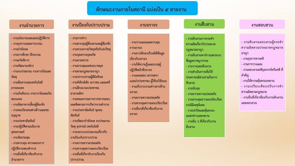 ๕. ปฏิบัติการอื่นใดตามที่กฎหมายกำหนดให้เป็นหน้าที่ของตำรวจหรือสำนักงานตำรวจแห่งชาติ